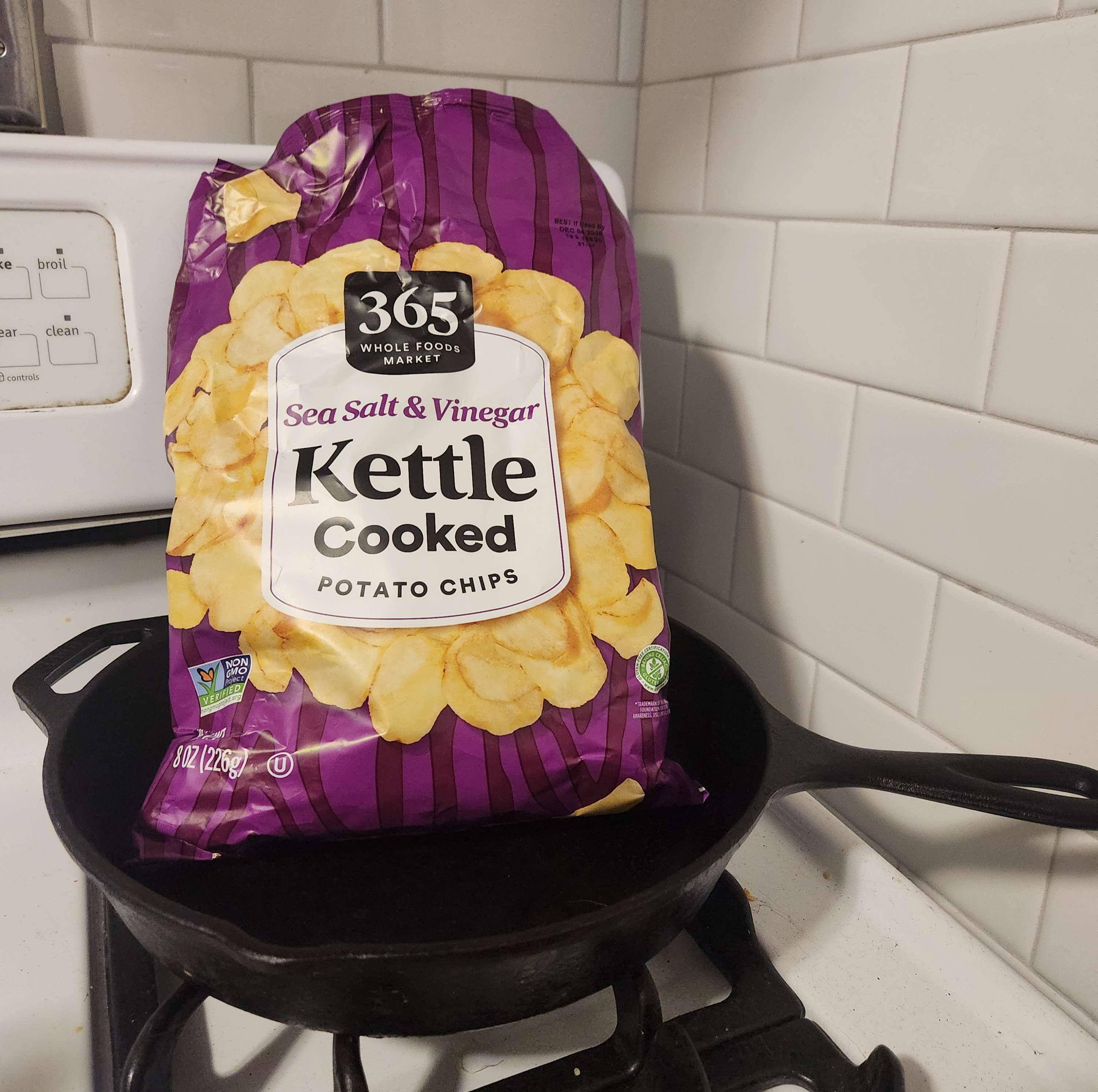 this is the absolute pinnacle of what salt and vinegar chips can be. i am sorry if you live somewhere that doesnt sell these (i think theyre mostly in the midwest usa??) because if you like salt and vinegar chips you need to try these. a strong vinegar flavor that is acidic enough that opening the bag is enough to make your mouth water without being sour. they've even got some umami. the texture is perfect for a kettle chip, as well. at their best, even in moderation these will kinda hurt when you eat them. whenever i mention to my friends that this is my favorite brand their reaction is usually something like "oh god no those are too strong". their only flaw that keeps them from a perfect 10/10 score is the inconsistancy. every 5th bag or so tends to be light on the flavor. otherwise, the platonic ideal of this chip genre.